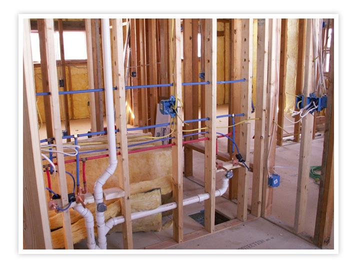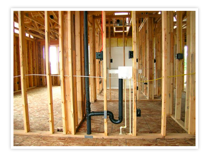 Framing panels with mechanical, electric, and plumbing rough-in improvements pre-installed.